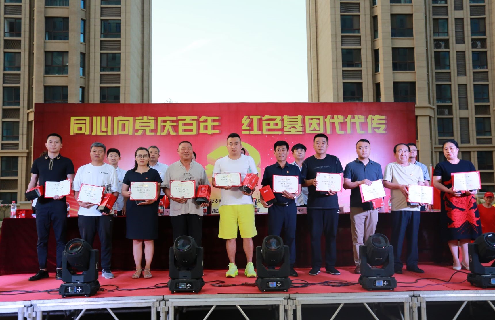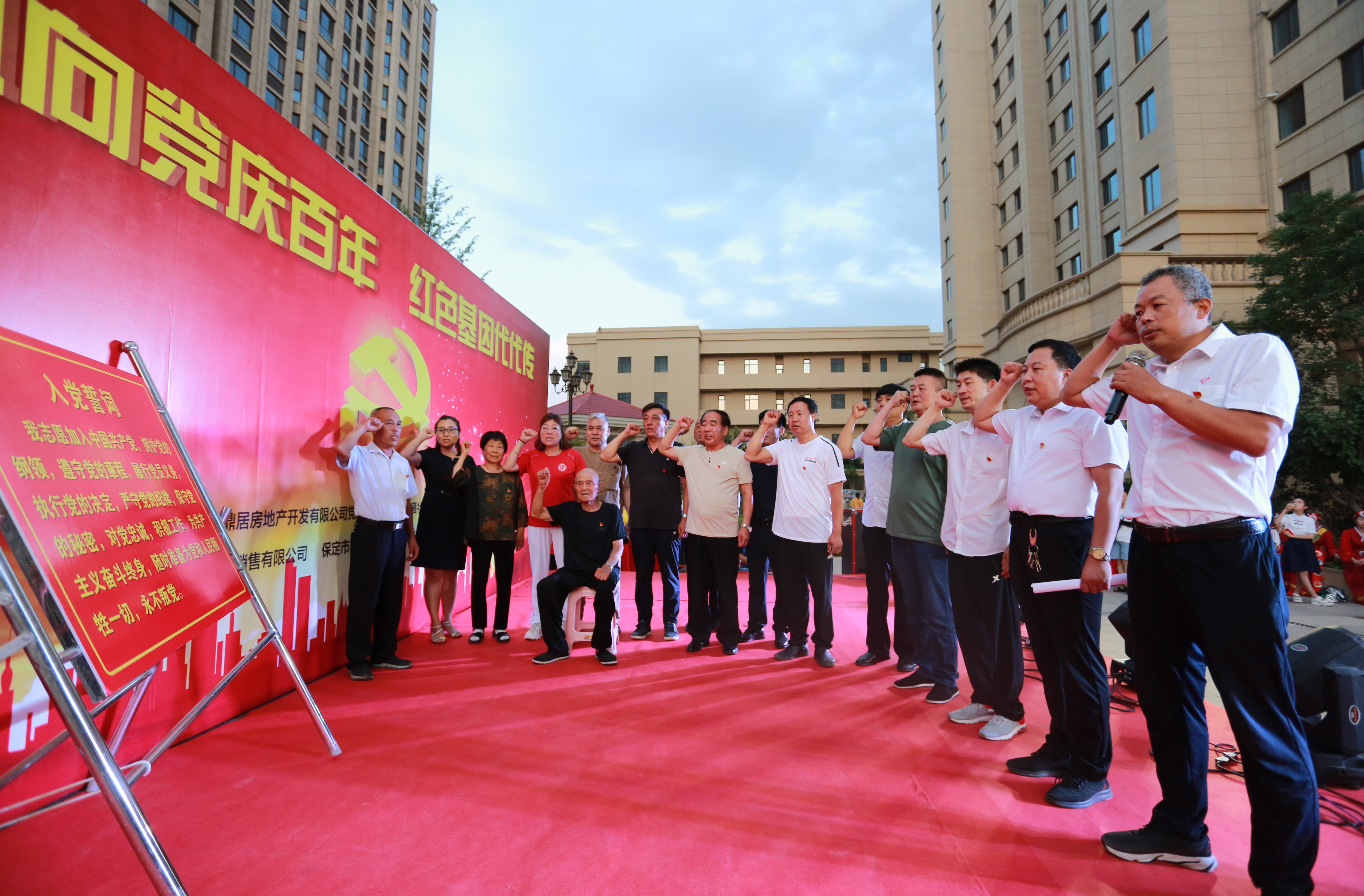 為隆重紀(jì)念中國共產(chǎn)黨建黨100周年,歌頌建黨以來的豐功偉業(yè)和輝煌成就,激發(fā)鼎居首府小區(qū)居民愛黨、愛祖國、愛家鄉(xiāng)的熱情,豐富小區(qū)居民文化生活,6月30日晚7點,由北京萬興建筑集團(tuán)、保定市鼎居地產(chǎn)主辦的“同心向黨慶百年、紅色基因代代傳”慶祝建黨100周年活動在小區(qū)廣場隆重舉行。