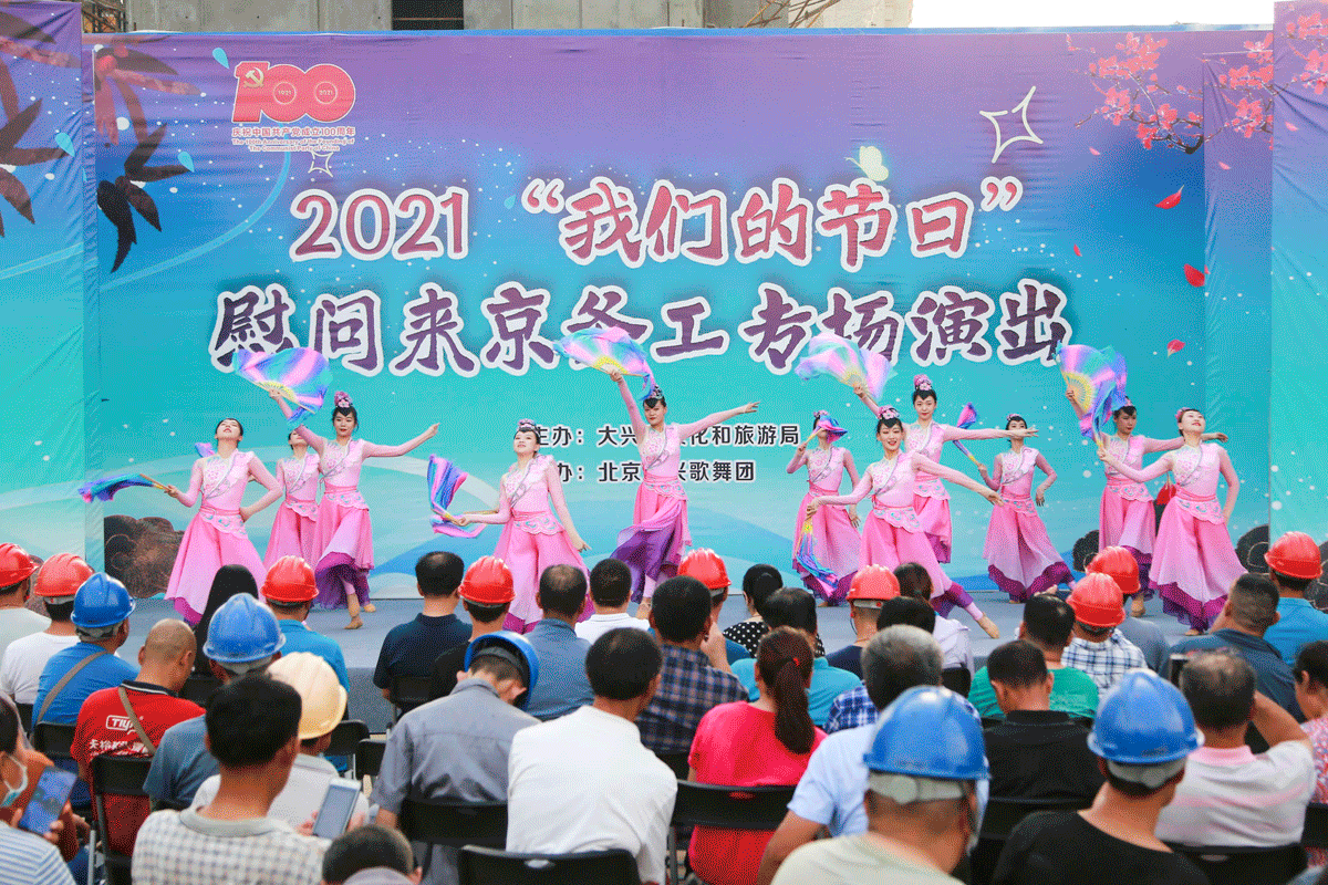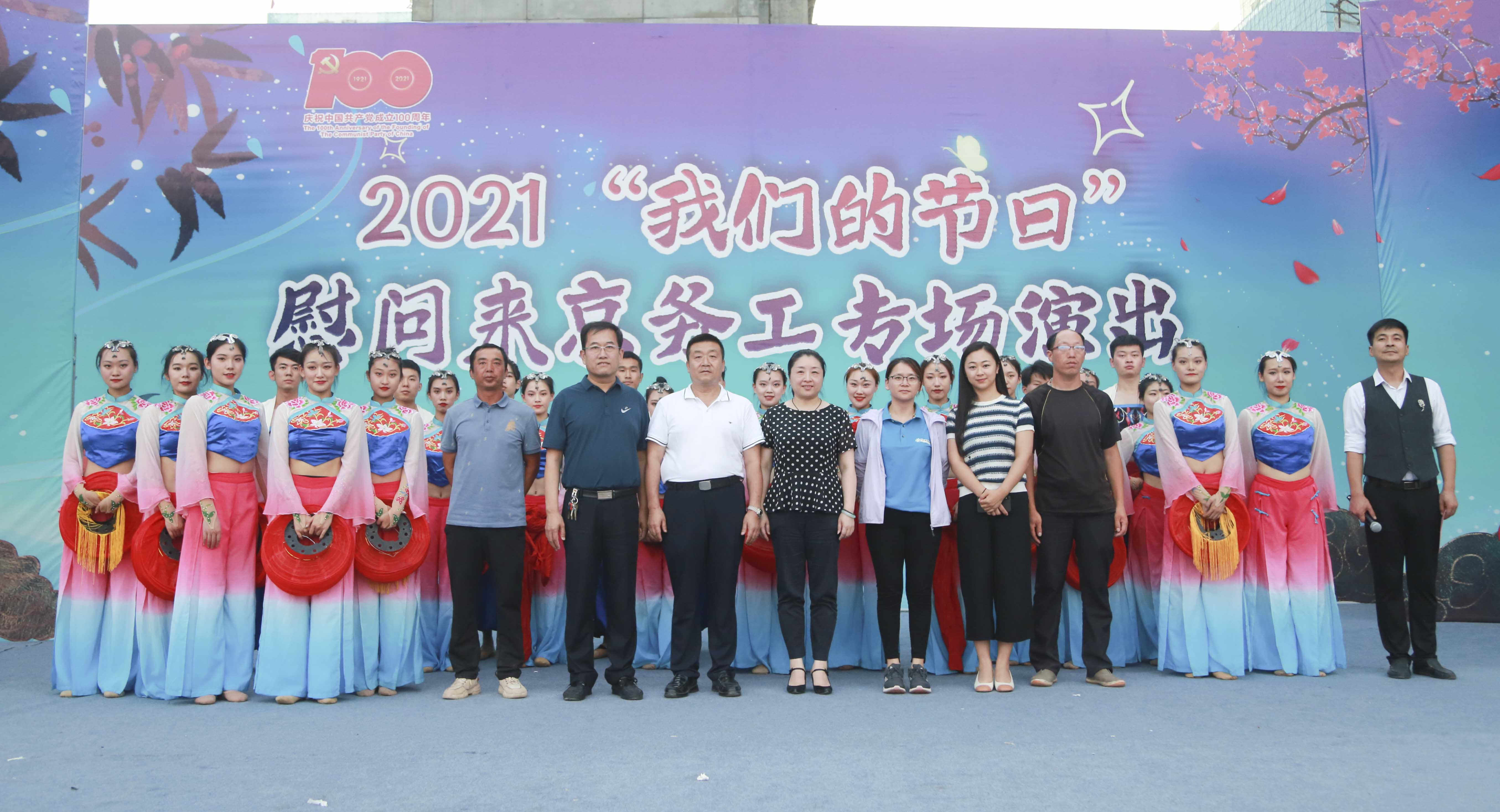 為慰問一線的建筑工友,謳歌辛勤的勞動者,7月9日晚,“2021年‘我們的節(jié)日’”慰問來京務(wù)工人員專場演出活動在北京萬興承建的舊宮集賢安置房項目隆重舉行,萬興歌舞團為工友們送上了精彩的節(jié)目盛宴。
