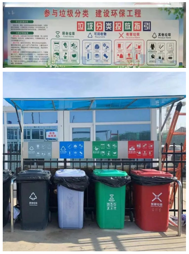 為便于項(xiàng)目人員進(jìn)行垃圾分類投放,安定自住樓(西片區(qū))A組團(tuán)項(xiàng)目在開(kāi)工之初,按照集團(tuán)統(tǒng)一要求設(shè)置了垃圾分類設(shè)施,在施工現(xiàn)場(chǎng)辦公區(qū)、宿舍區(qū)、集中供餐區(qū)分別設(shè)置集中垃圾存放點(diǎn),按實(shí)際需要配備足夠數(shù)量的四類垃圾桶:可回收垃圾桶、廚余垃圾桶、有害垃圾桶、其他垃圾桶,并在醒目位置張貼了垃圾分類知識(shí)宣傳海報(bào),指定專人負(fù)責(zé)。