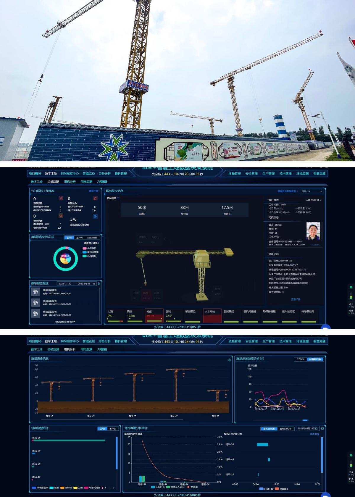 項目裝備塔吊的塔基監(jiān)測系統(tǒng),對五限位、群塔防碰撞及時預(yù)警,引入吊鉤可視化設(shè)備,極大提高了塔吊作業(yè)安全和工作效率。
